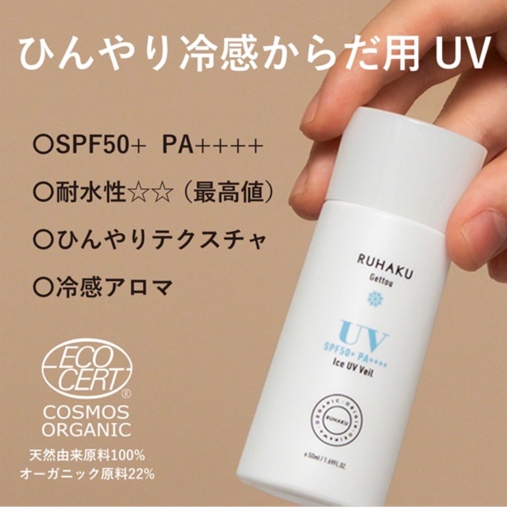 世界基準のオーガニック認証を取得した日焼け止めにもかかわらずSPF50+ PA++++の高い紫外線カット力と軽い使い心地でご好評をいただいておりますが、この度夏季限定でひんやり冷感処方のアイスUVヴェールを開発いたしました。