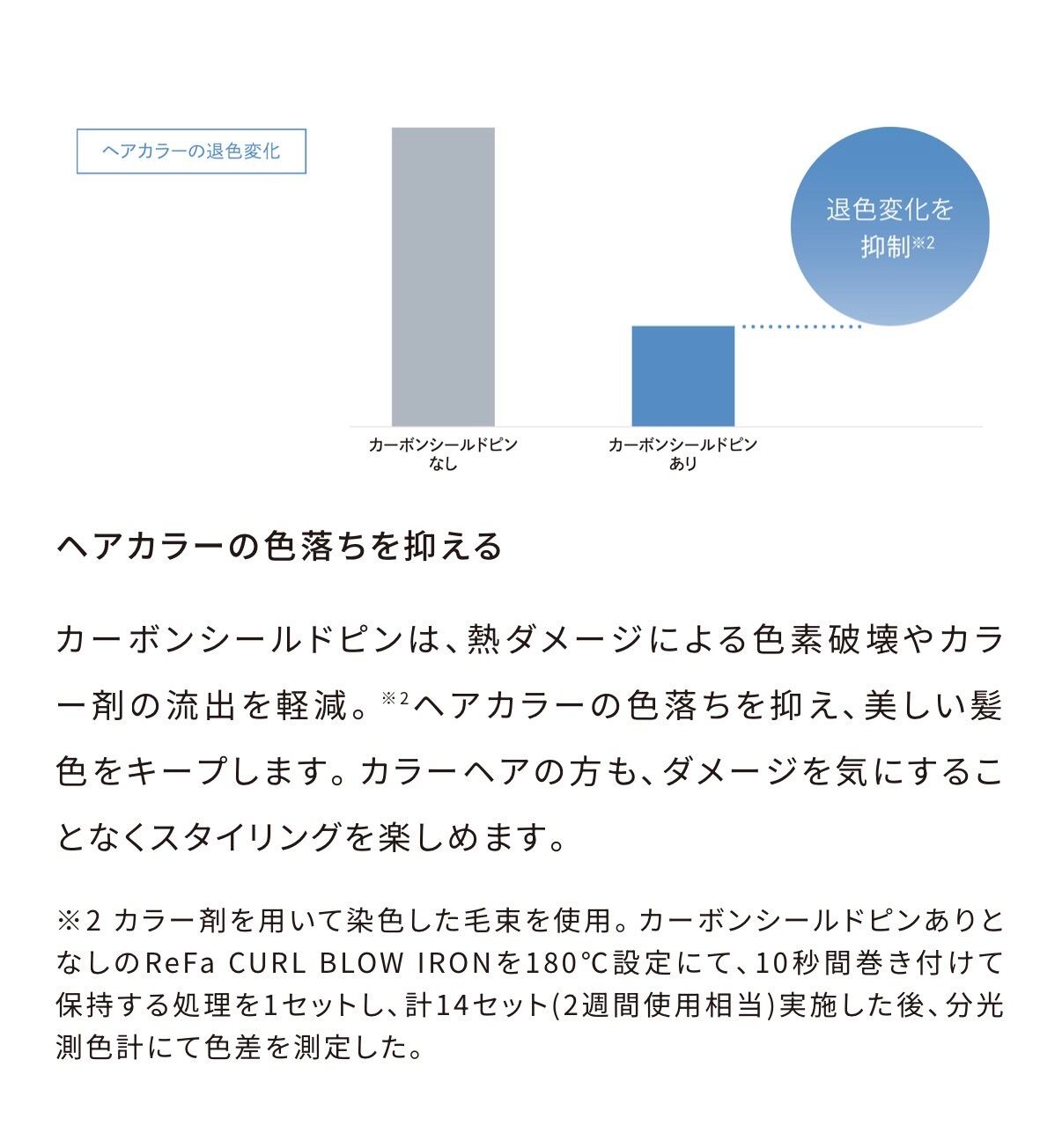 効果とやさしさの妥協なき両立を実現しています。摩擦を抑えてやさしく熱を伝えるカーボンシールドピンと、キャッチして伸ばすダブルマーキスコームの掛け合わせでダメージレスなスタイリングを簡単に。